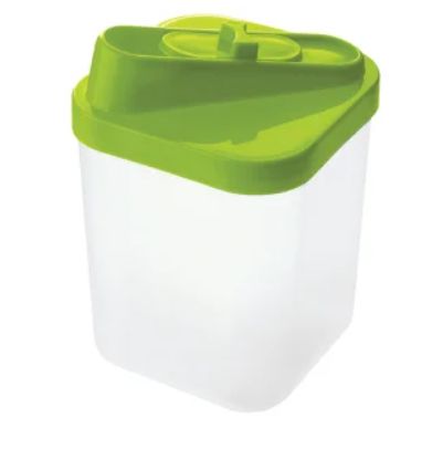 Açucareiro de plástico com capacidade para 900g, ideal para armazenar açúcar ou farinha com praticidade.