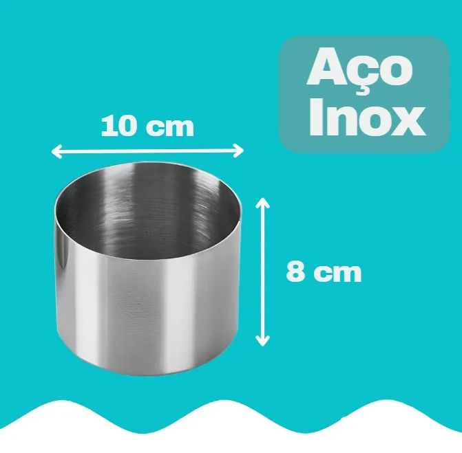 Aro cortador redondo em inox 10x8cm ideal para modelar massas, bolos e doces.