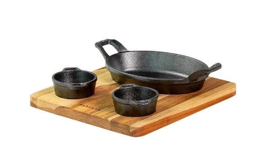 Assadeira Facile com 1 Base de Madeira e 2 Molheiras Fundição Santana Ref. 7347