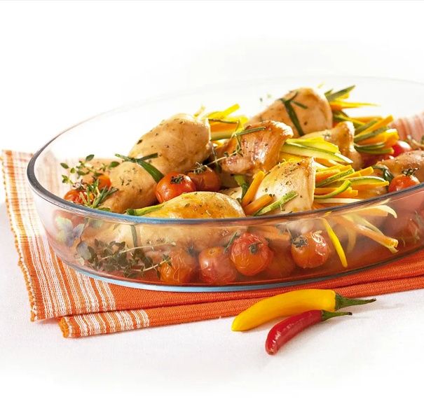 Assadeira oval média em vidro resistente, ideal para assar e servir diversos pratos. Material de alta qualidade. Dimensões: 35 x 24 cm. Transparente. Tags: forma, travessa, assar, forno, servir, cozinha.