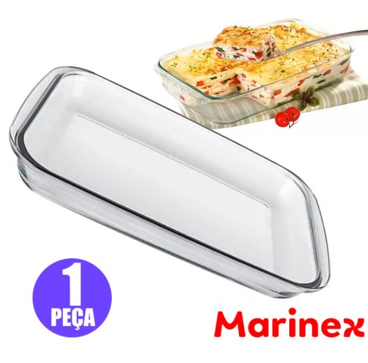 Assadeira retangular pequena de vidro, com 30x17x5cm, ideal para forno, preparo de receitas e servir.