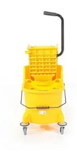 Balde espremedor duplo Perfect, capacidade 33L, indicado para uso profissional em ambientes comerciais e industriais. Possui divisória para água limpa e suja, aumentando a eficiência da limpeza. Fabricado em plástico resistente, na cor amarela. Facilita o enxágue e o manuseio de mops. Tags: balde duplo, mop água suja, limpeza profissional, balde industrial.