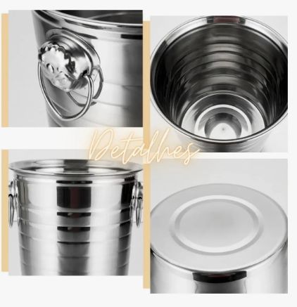 Balde de inox de 5 litros para servir e manter garrafas geladas, ideal para bares e festas.
