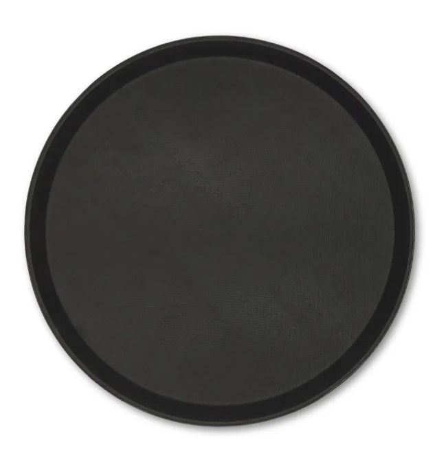 Bandeja redonda fabricada em polipropileno resistente, com superfície antiderrapante para transporte seguro de bebidas e alimentos. Ideal para uso profissional em bares, restaurantes, buffets e eventos. Diâmetro: 45cm. Cor: preta. Tags: bandeja antiderrapante, bandeja servir, bandeja bar, bandeja restaurante, Weck.