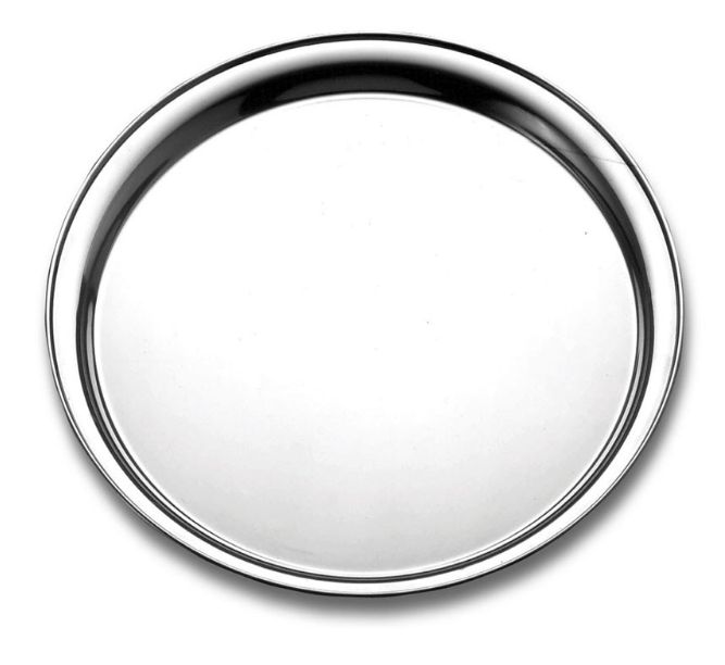 Bandeja redonda para garçom fabricada em aço inox reforçado, ideal para servir drinks e alimentos em bares e restaurantes. Tamanho de 45 cm de diâmetro, alta durabilidade, fácil higienização. Cor: Inox. Tags: bandeja inox, garçom, servir, Fortinox, salão, resistente.