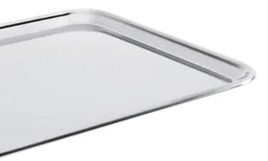 Bandeja retangular em aço inox, 48x32cm, ideal para servir alimentos ou organizar utensílios.