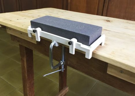 Base de apoio para pedra de amolar Picelli, com prendedor plástico, ideal para afiação segura e prática.