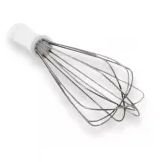 Batedor tipo fouet com cabo branco de 30cm, ideal para misturar e aerar ingredientes.