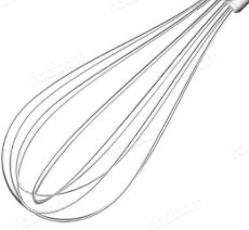 Batedor tipo fouet em aço inoxidável, ideal para misturar e aerar ingredientes.