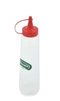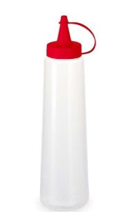 Bisnaga fabricada em plástico resistente e atóxico, com tampa vermelha de rosquear. Perfeita para uso comercial e doméstico em lanchonetes, restaurantes e cozinhas. Facilita a dosagem de catchup, maionese, mostarda e outros molhos. Capacidade: 400ml. Cor: Transparente com tampa vermelha. Tags: bisnaga para molhos, dosador, squeeze, plástico, condimentador.