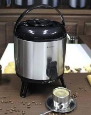 Botijão térmico fabricado em aço inox, resistente e durável, com alça para transporte e torneira para fácil acesso. Capacidade de 6L. Indicado para uso comercial, eventos e residências. Cor: preto. Tags: botijão térmico, garrafão térmico, recipiente térmico.