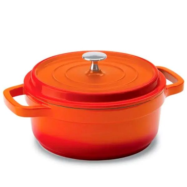 Caçarola de alumínio fundido 6,8L, ideal para receitas familiares, com tampa e alças ergonômicas.