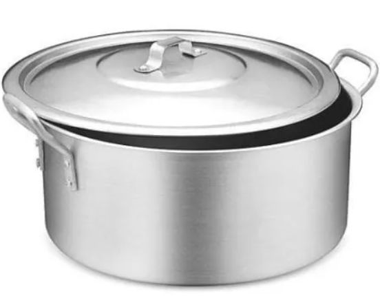Caçarola de alumínio 34x16cm, 14,5L, ideal para uso profissional e doméstico.