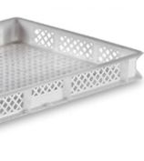 Caixa plástica vazada empilhável Bolivar 60x40x6cm, ideal para armazenamento de diversos itens.