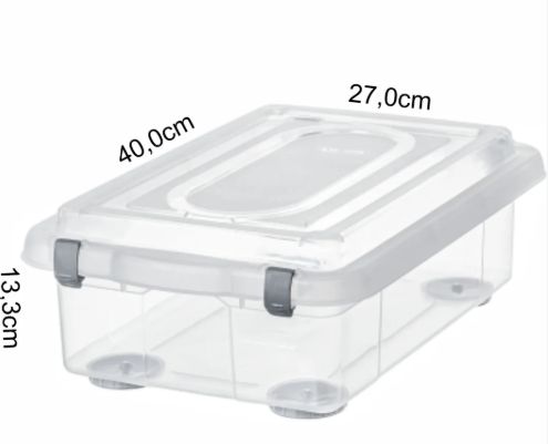 Caixa organizadora fabricada em polipropileno resistente, ideal para guardar e organizar itens em casa, escritório, ou comércio. Possui capacidade de 8,6 litros, dimensões de 40x27x13cm, alta durabilidade, fácil de limpar. Produto transparente, facilita a visualização do conteúdo. Perfeita para roupas, brinquedos, documentos e utilidades. Tags: organizador, pote, recipiente, armazenamento.