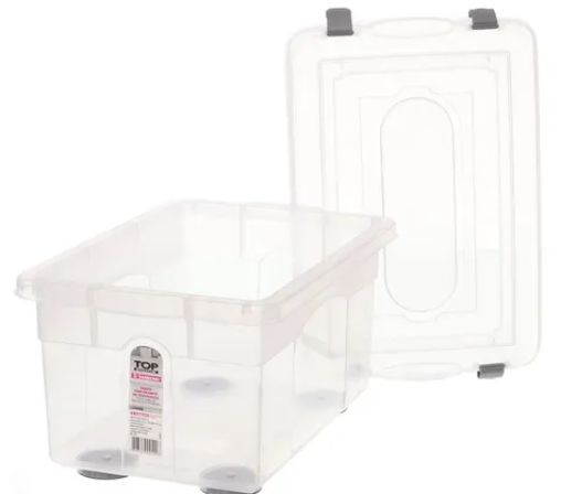 Caixa organizadora em plástico resistente, perfeita para armazenar e organizar objetos diversos em residências, escritórios ou estabelecimentos. Capacidade de 16L, dimensões 40x27x22cm, cor translúcida. Tags: caixa organizadora, pote plástico, vasilha multiuso, armazenamento, utilidades domésticas.