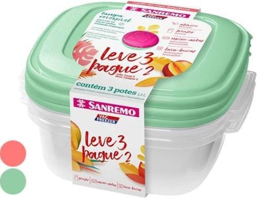 Caixa plástica Sanremo quadrada Ref. 455 produzida em polipropileno resistente. Perfeita para armazenar e conservar alimentos em geladeira, freezer ou armário. Tampa vedante mantém frescor por mais tempo. Capacidade: 1,5 litros. Medidas: 17x17x7cm. Cor variada. Ideal para organização doméstica ou comercial. Tags: pote para alimentos, vasilha, organização, freezer, geladeira, tampa, alimento, recipiente hermético.