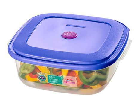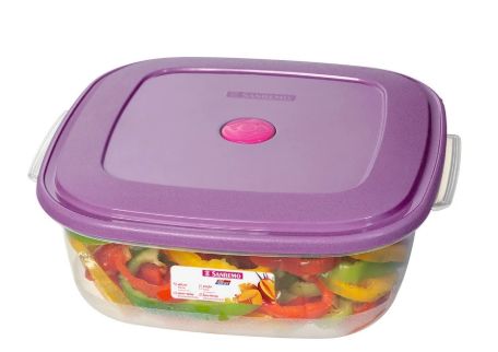 Caixa plástica quadrada com 2,9L, ideal para armazenar alimentos ou utensílios.