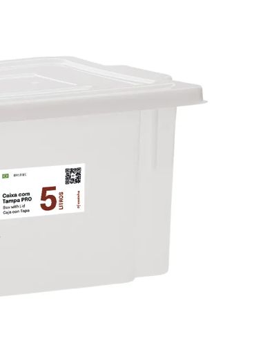 Caixa plástica com tampa fabricada em polipropileno, resistente e livre de BPA. Perfeita para armazenar alimentos, utensílios ou objetos diversos. Capacidade: 5L. Medidas: 34x16x14cm. Cor transparente. Tags: pote, vasilha, organizador.