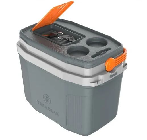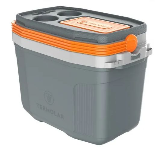 Caixa térmica Termolar 20L em polipropileno, ideal para conservar bebidas e alimentos frios, perfeita para lazer, praia ou viagens. Medidas: 42x26x30cm. Cor: cinza. Sinônimos: cooler, conservadora térmica.