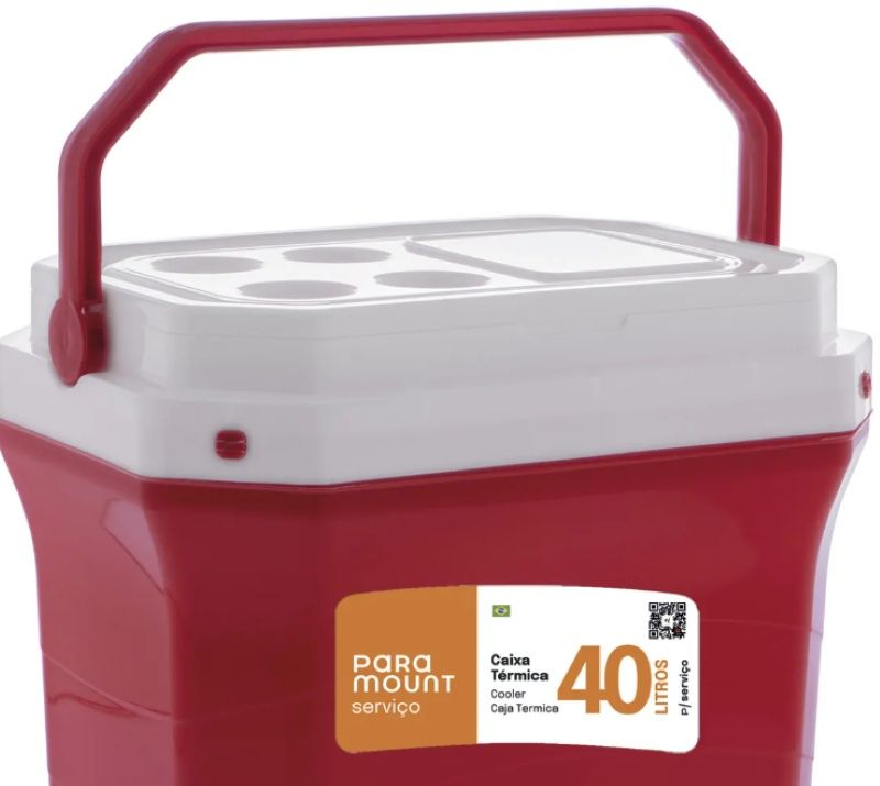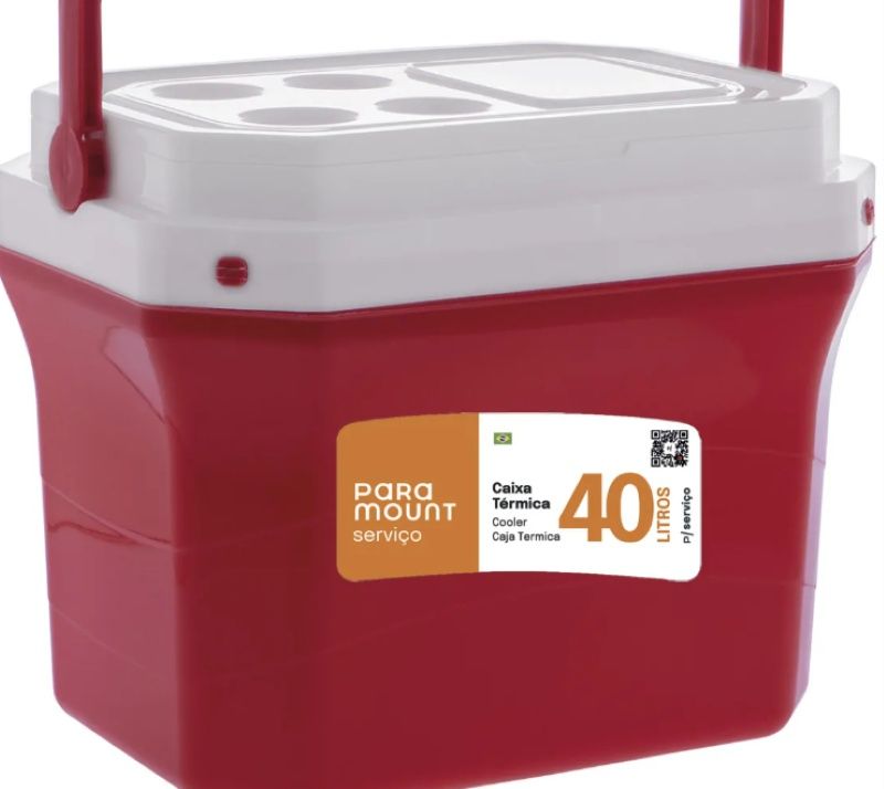 Caixa térmica Paramount 40 litros, cor vermelha, ideal para manter bebidas e alimentos gelados.