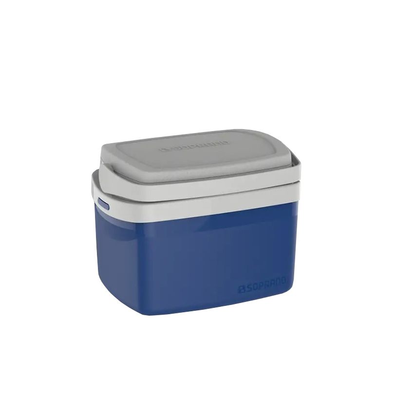 Caixa térmica Soprano 5L azul, ideal para conservar bebidas e alimentos gelados em passeios e viagens.