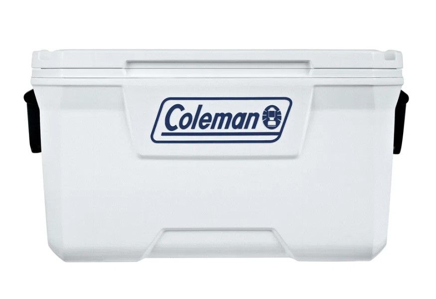 Caixa térmica Coleman Marine 66 litros branca, alta performance para manter bebidas e alimentos gelados por longos períodos.