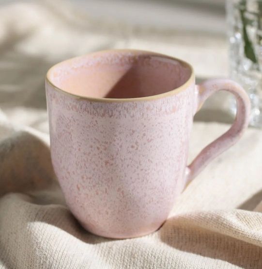 Caneca em cerâmica de alta resistência, ideal para servir café, chá ou outras bebidas. Uso doméstico e comercial. Capacidade de 273ml, cor Litchi, design elegante. Tags: caneca, xícara, Porto Brasil, cerâmica, chá, café.