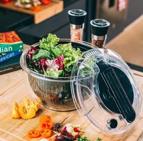 Centrífuga de folhas em acrílico, capacidade 5 litros, ideal para secar saladas e vegetais.