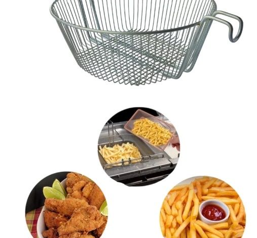 Cesta para fritura confeccionada em arame de aço com acabamento cromado. Ideal para cozinhas industriais, lanchonetes e restaurantes. Permite o preparo seguro e eficiente de alimentos fritos. Medidas: diâmetro superior 34,5cm, formato cônico para escoamento do óleo. Cor: metálica. Tags: cesta fritura, cesta em arame, peneira fritura, fritadeira, profissional, cozinha industrial.
