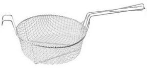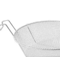 Cesta de fritura redonda em tela grossa, 28cm de diâmetro, ideal para uso em fritadeiras profissionais.