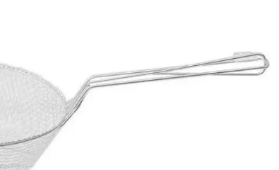 Cesta de fritura redonda Aramefactor fabricada em aço galvanizado, com tela grossa reforçada. Ideal para cozinhas industriais, restaurantes e food trucks. Dimensões: 28cm de diâmetro. Cor: metálica. Tags: cesta para fritura, fritadeiras, acessórios cozinha industrial, rede para fritura.