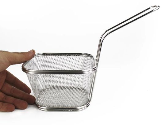 Cestinha para porções fabricada em aço inoxidável, resistente e fácil de limpar. Ideal para servir batatas fritas, petiscos ou porções em bares, restaurantes ou uso doméstico. Medidas: 13x8cm. Cor: inox. Tags: cestinha para porção, petisqueira, cestinha inox, cesta de servir.