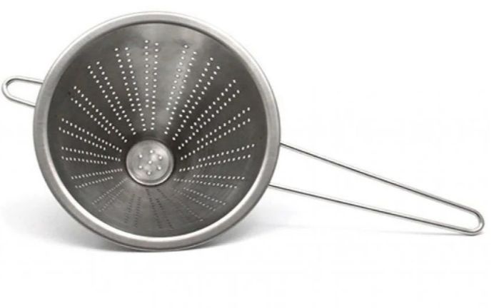Coador chinoy fabricado em aço inox de alta qualidade, resistente e fácil de limpar. Indicado para coar óleos, caldos, massas e frituras em cozinhas domésticas ou profissionais. Diâmetro: 20cm. Cor: prateado. Tags: peneira, escumadeira, utensílios inox Kehome.