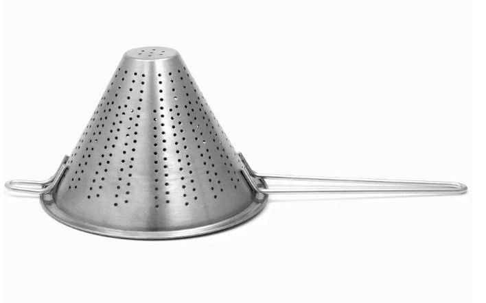 Coador tipo chinoy em inox de 25cm, ideal para coar líquidos com praticidade e higiene.