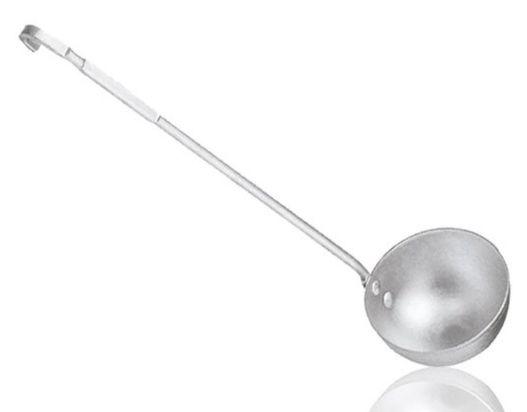 Concha fabricada em alumínio resistente, ideal para uso intensivo em hotéis, restaurantes e cozinhas industriais. Comprimento de 53cm, bojo com 16cm de diâmetro. Indicada para servir sopas, caldos e feijão em grandes recipientes. Cor: alumínio natural. Sinônimos: concha grande, concha industrial, concha hotel.