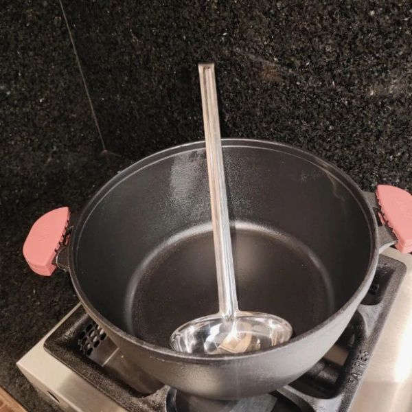 Concha fabricada em aço inoxidável de alta qualidade, ideal para servir sopas, caldos e líquidos em hotéis, restaurantes e cozinhas industriais. Medidas: 12cm (diâmetro) x 40cm (comprimento). Cor: prata. Alta resistência, fácil de limpar. Tags: colher de servir, concha grande, utensílio profissional.