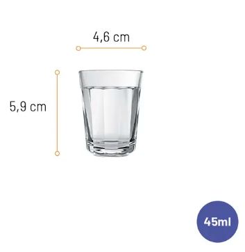 Kit com 24 copos mini americano de 45ml, ideal para servir doses e aperitivos.