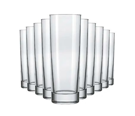Copo vidro transparente 300ml, formato tubo, pacote com 12 unidades. Ideal para bares, restaurantes e uso residencial.
