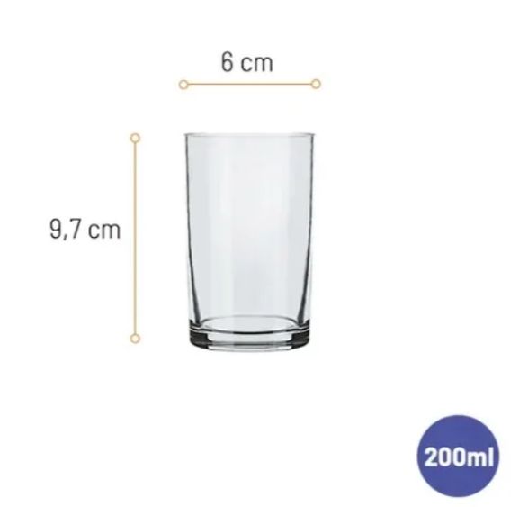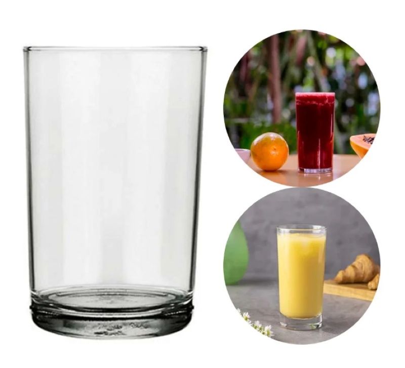 Copo de vidro Cylinder para suco, 200ml, caixa com 24 unidades, ideal para bares, restaurantes e uso doméstico.