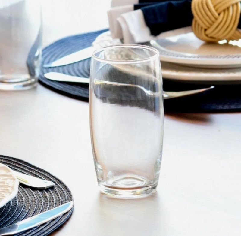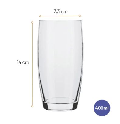 Copo de vidro Long Drink Oca 400ml, ideal para bebidas geladas e coquetéis. Caixa com 24 unidades.