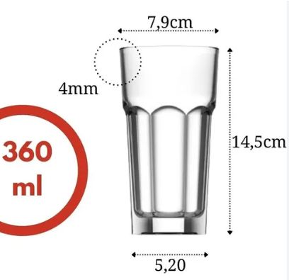 Copo Long Drink 360ml de vidro, ideal para drinks e refrigerantes. Caixa com 24 unidades. Piramides Importacao Ref. 5322