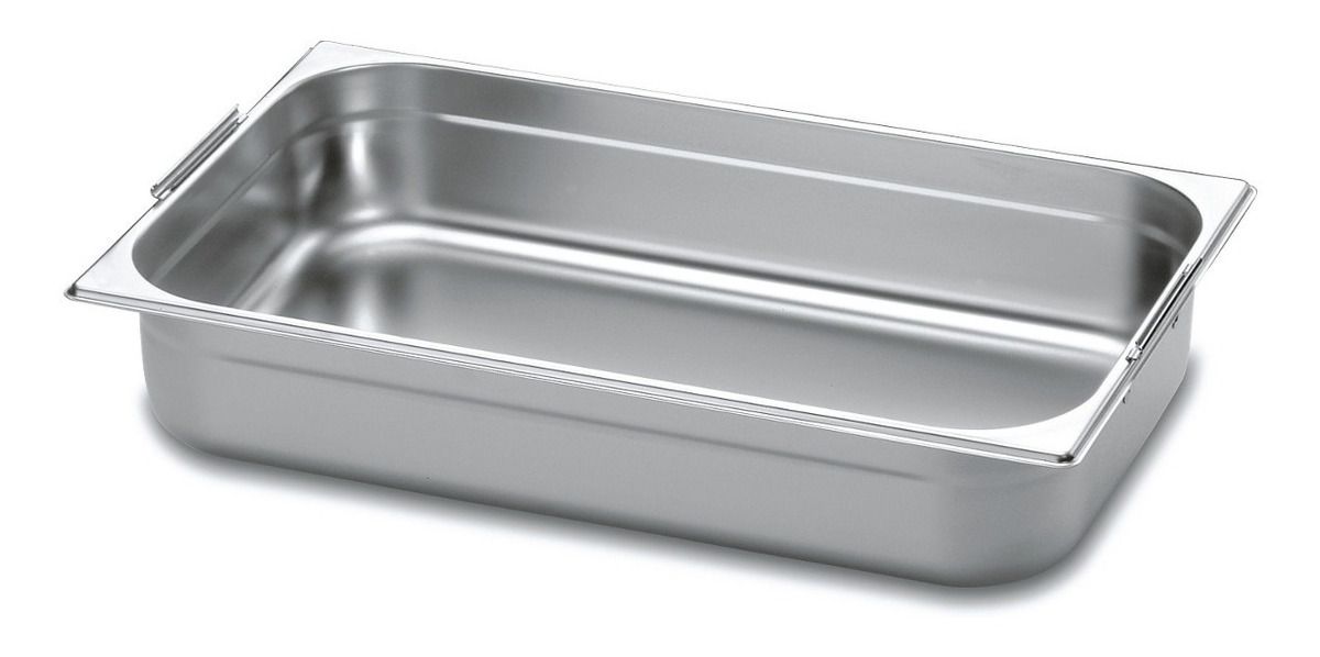 Cuba Gastronômica 1/1x100 Orcil em aço inox, com alça lateral para facilitar o manuseio. Perfeita para buffets, restaurantes e refeitórios. Dimensões: 53x32,5x10cm. Capacidade aproximada de 17 litros. Material: Inox. Cor: Prata. Tags: GN, cuba inox, cuba gastronômica, cuba 1/1, armazenamento alimentos, cuba com alça.