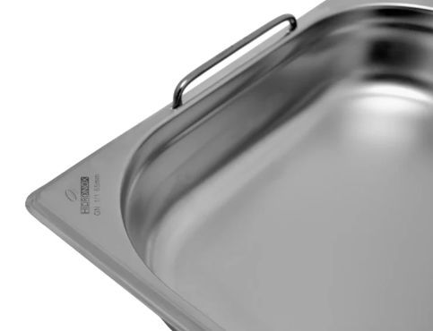 Cuba Gastronômica em aço inox 1/1x65mm com alça. Ideal para organização e serviço de alimentos.