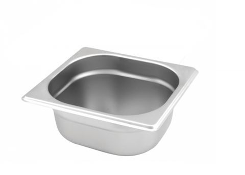 Cuba Gastronômica 1/6, medidas 17,5x16x6,5cm, aço inox, ideal para buffets, refeitórios e restaurantes.