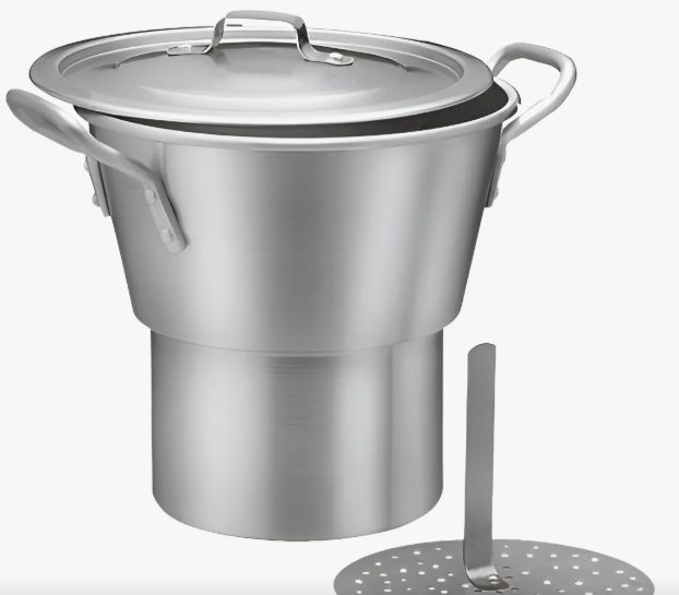 Cuscuzeiro em alumínio para preparo de cuscuz, ideal para hotéis e restaurantes, com base e 38cm.