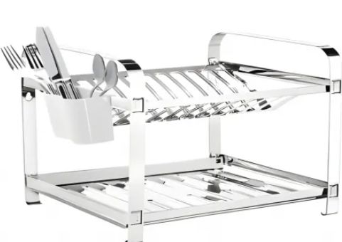 Escorredor de pratos em aço inox para 24 pratos, resistente e prático. Ideal para organização da pia com durabilidade e facilidade na limpeza.