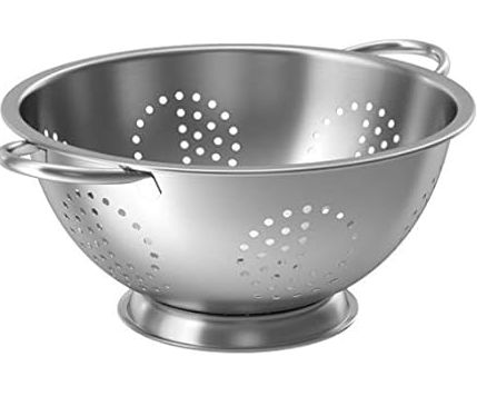 Escorredor de massas em aço inoxidável, diâmetro de 16cm, ideal para cozinhas domésticas e profissionais.