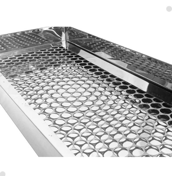 Escorredor de Pastel fabricado em aço inox, resistente à corrosão, indicado para uso intenso em cozinhas profissionais, restaurante ou foodtruck. Facilita a drenagem do óleo após frituras. Medidas: 32x41cm. Cor: inox prateado. Tags: escorredor inox, escorredor para fritura, utensílio industrial, escorredor para pastel, suporte de frituras.