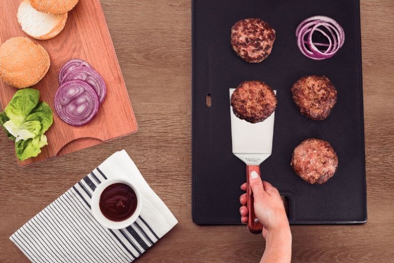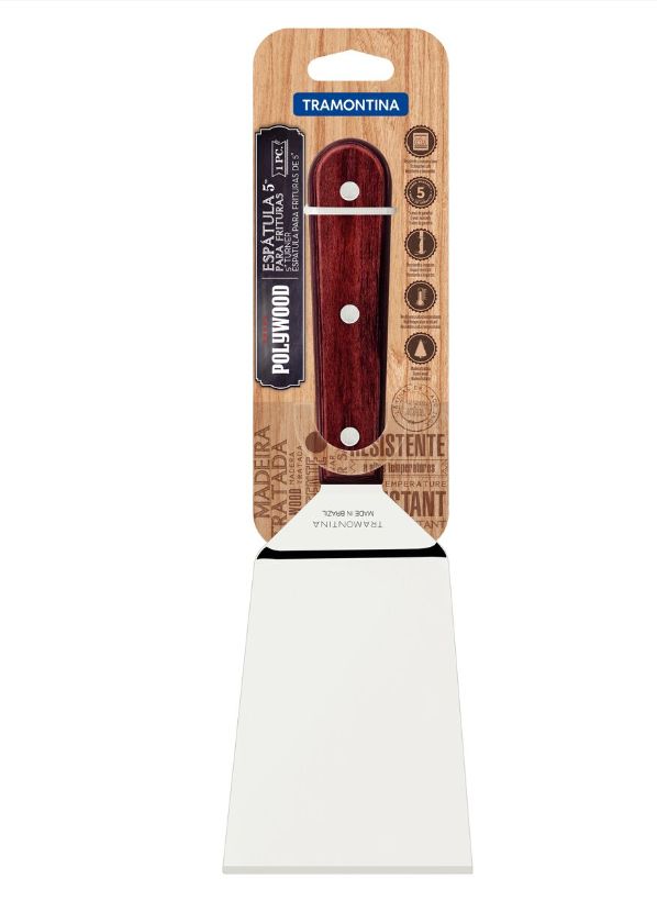 Espátula Tramontina Polywood para Hambúrguer, resistente e ideal para grelhados.